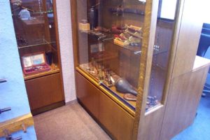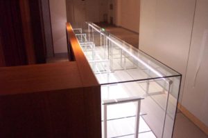 上野本店にショーケースとデスク機能を合わせもつ家具を製作しました。お客様の発案によるもので、ショップスペースとスタッフのスペースを区分けする役目を果たしています。家具の端部を無垢のナラ材で処理して丈夫な作り…
