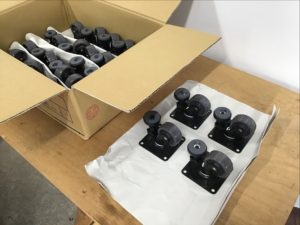 可動式ショーケースに取り付けるキャスターが入荷しました。車輪と一緒にアジャスターが付いているパッキングキャスターという品物です。カタログ等ではよく目にしているものの、実際に使うのは初めてです。現物を見てみますと、想像して…