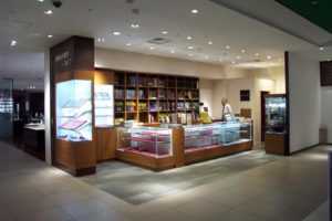 売場の移動に伴う改装工事を行いました。旧売場の落ち着いたイメージを継承しつつ、正面にはサインの機能を兼ねたモニュメントのようなショーケースを設けました。壁面の書棚が重厚感を与え、カウンターショーケースとのバ…
