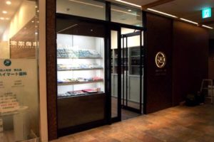 目白駅前の商業施設「トラッド目白」2階の切手とコインのお店です。入口のデザインとの調和を計り、サッシのガラスサイズに合せたショーケースを作りました。照明器具の光源が直接目に入らないように、また棚板の角度を自…